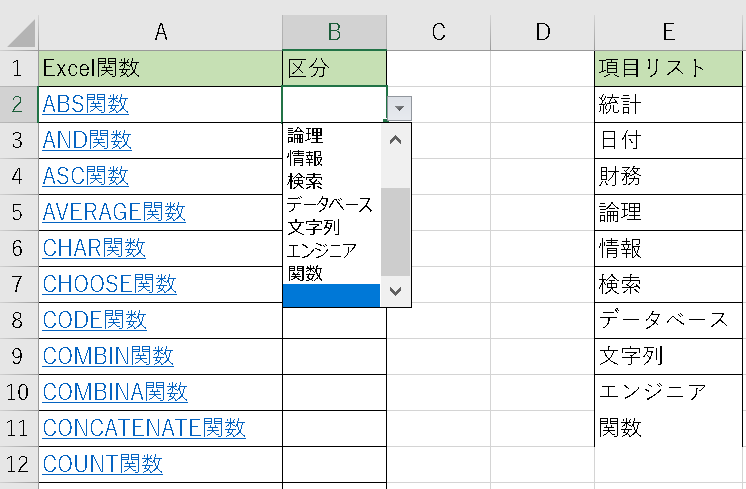 上記画像は新たにエンジニア、関数という項目リストを入力し